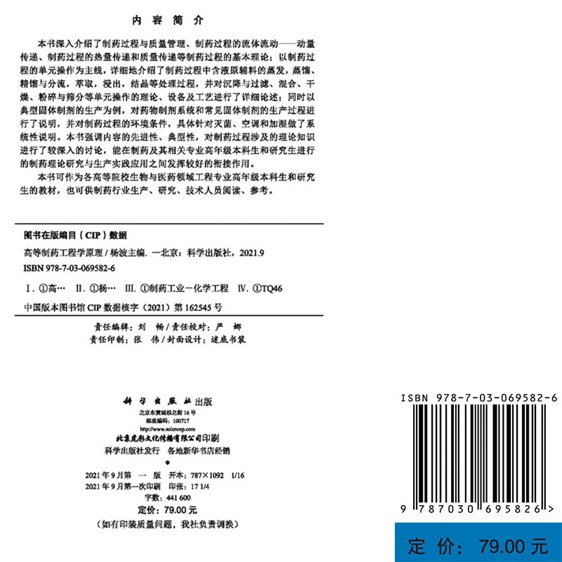 社9787030695826 高等制药工程学原理主编杨波科学出版 正版 现货平装