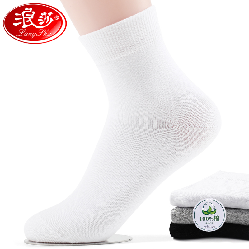 透气白色中筒袜女士全棉袜防臭纯棉女袜夏季 浪莎袜子女春秋季 薄款