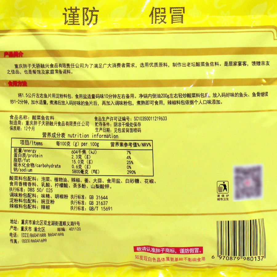 胖子酸菜鱼调料316g 2家用四川老坛酸菜鱼调味料泡菜鱼酸汤鱼火锅
