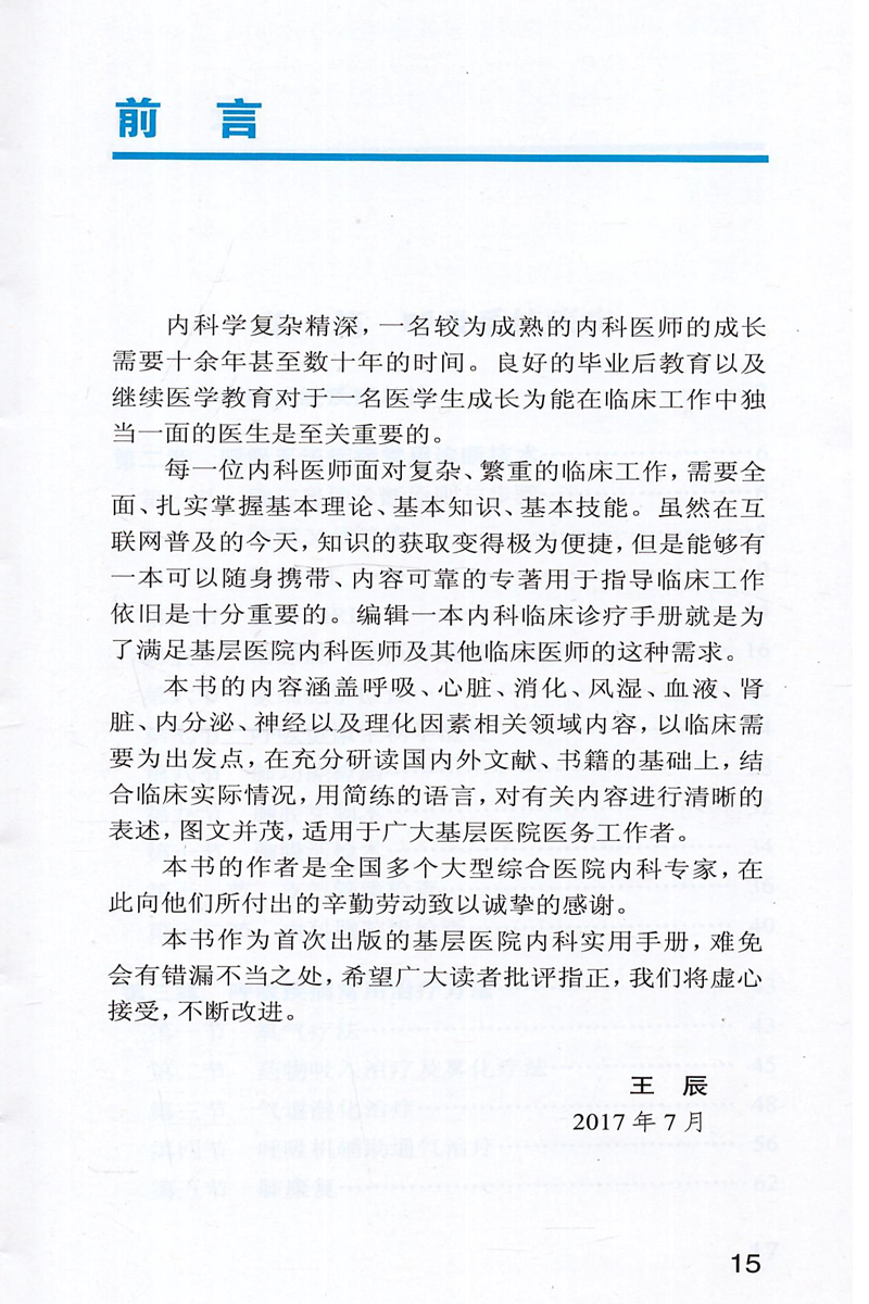 社 正版 人民卫生出版 王辰主编 T临床诊疗基本技能基本知识9787117242189 全国县级医院系列实用手册—内科医生手册
