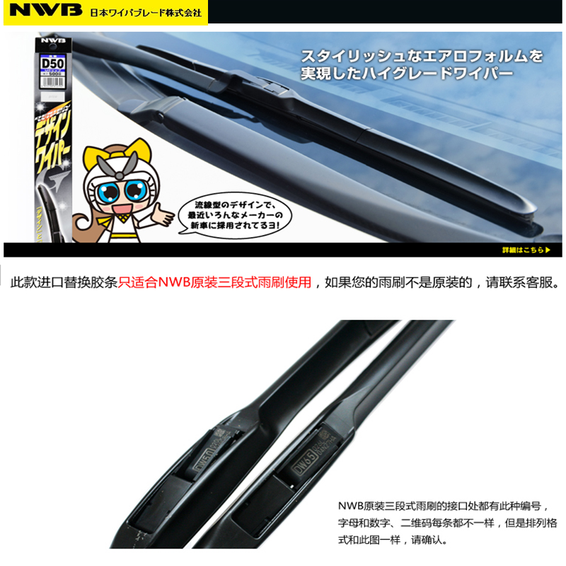 NWB雨刮器胶条适用丰田雷克萨斯凯迪拉克等原装 雨刷片 配套三段式