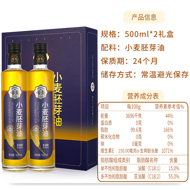 帝麦小麦胚芽油500ml 顺丰发货 2礼盒含维生素E涂抹按摩旗舰店正品
