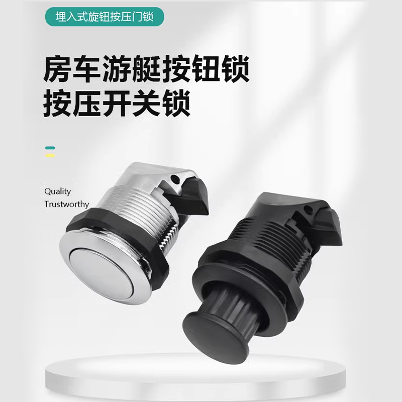 船舶房车按压碰锁医疗设备按钮旋转锁埋入式 弹出手柄旋钮按压门锁