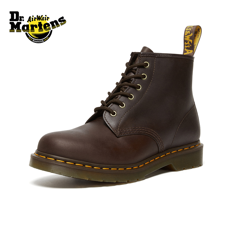 Dr.Martens马丁博士101英伦秋冬舒适百搭疯马皮棕色女中帮马丁靴