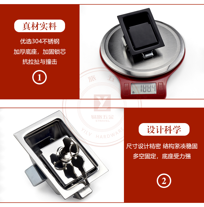 MS866 4不锈钢面板锁重型闸板锁工程车平面锁开关柜机柜设备门锁