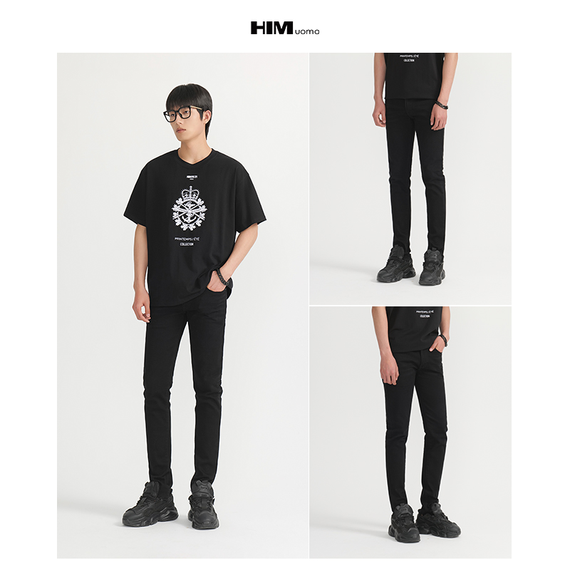 森马牛仔裤 子水洗长裤 男冬季 基础百搭通勤裤 弹力磨毛锥形裤 森柔