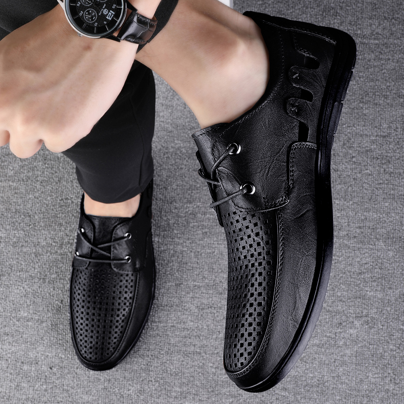 凉鞋 男士 镂空皮鞋 真皮休闲凉皮鞋 捡漏清仓特价 透气豆豆洞洞鞋 夏季