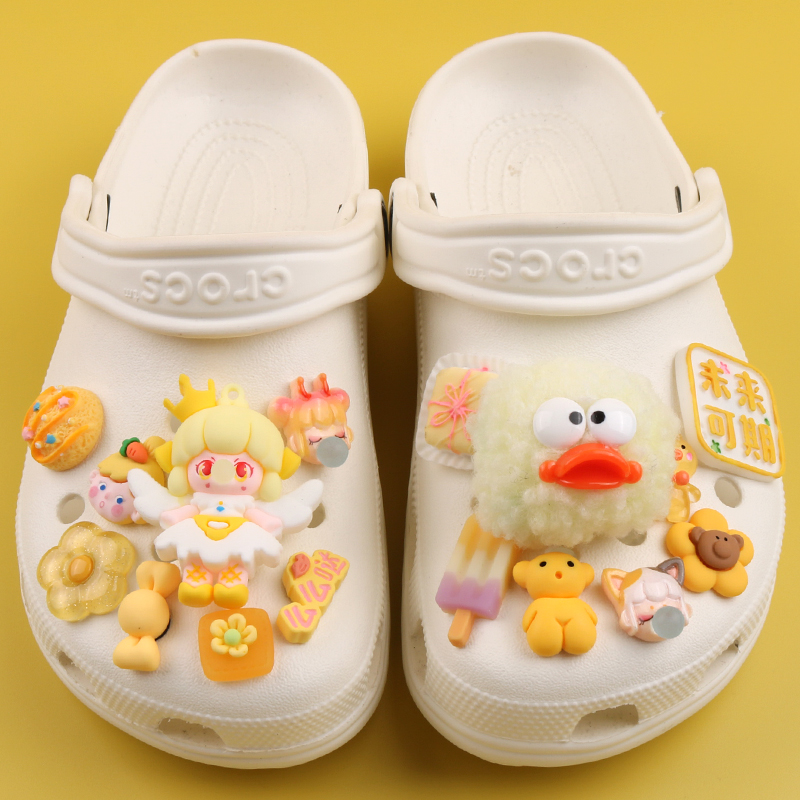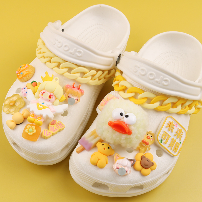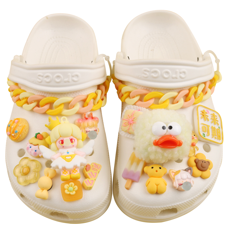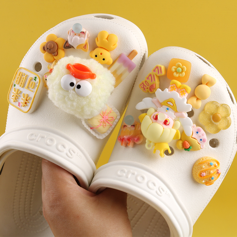 花卡扣 饰凉鞋 黄色系毛球泡泡公主crocs洞洞鞋 配饰卡骆驰配件diy装