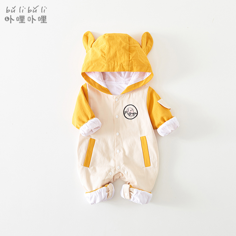 外出连体衣春秋 连帽外套可爱洋气长袖 新生婴儿衣服秋装 男宝宝秋季