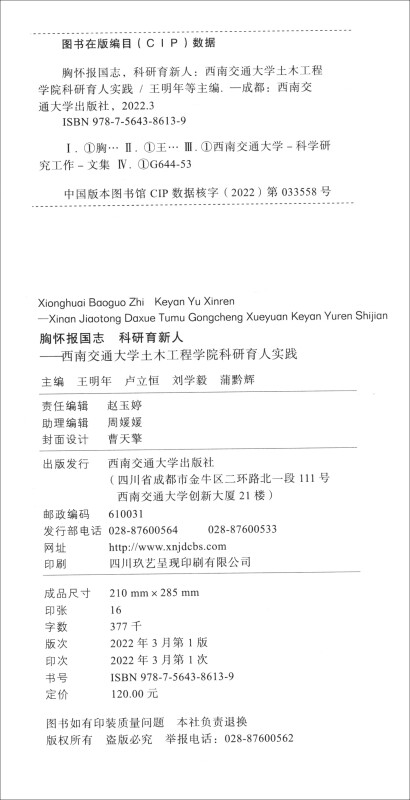 西南交通大学土木工程学院科研育人实践 科研育新人 胸怀报国志 王明年 彩色印刷