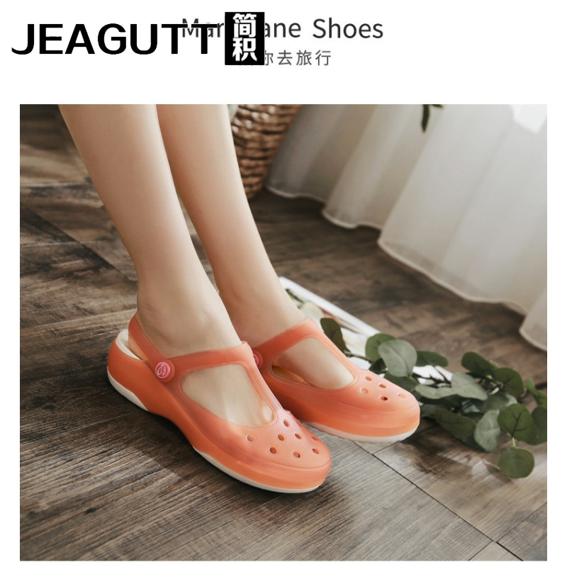 夏防滑厚底果冻沙滩外穿软底拖鞋 新款 凉鞋 女坡跟果冻鞋 护士洞洞鞋