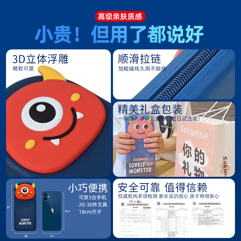得力EVA笔袋男文具盒小学生可爱大容量儿童卡通铅笔文具袋双层幼儿园小学一二三年级多功能学生男女孩笔盒