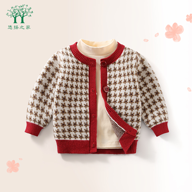 唐狮2025秋冬新款 甜美百搭 女毛衣韩系撞色扣设计圆领针织开衫