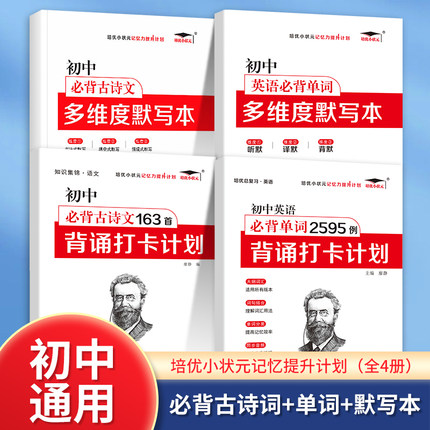 初中生培优小状元 记忆力提升打卡计划必背古诗文163首背诵默写本英语单词必背2595例背诵初一二三七八九年级艾宾浩斯曲线记忆法4册