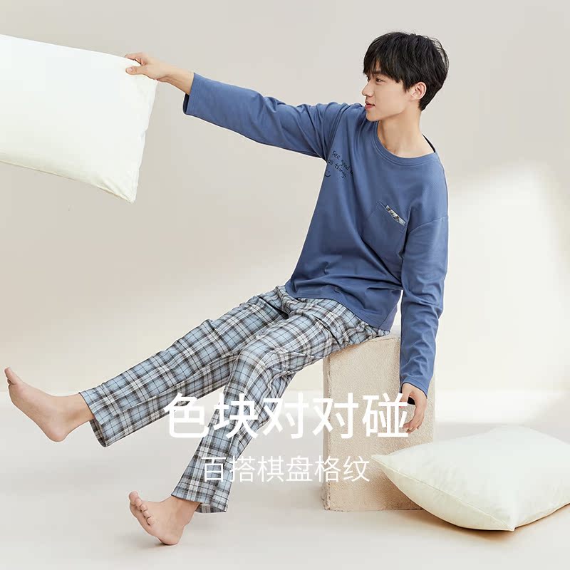 长袖 睡衣男秋季 长裤 格子睡裤 秋鹿 纯棉网红爆款 清仓仅剩加大码