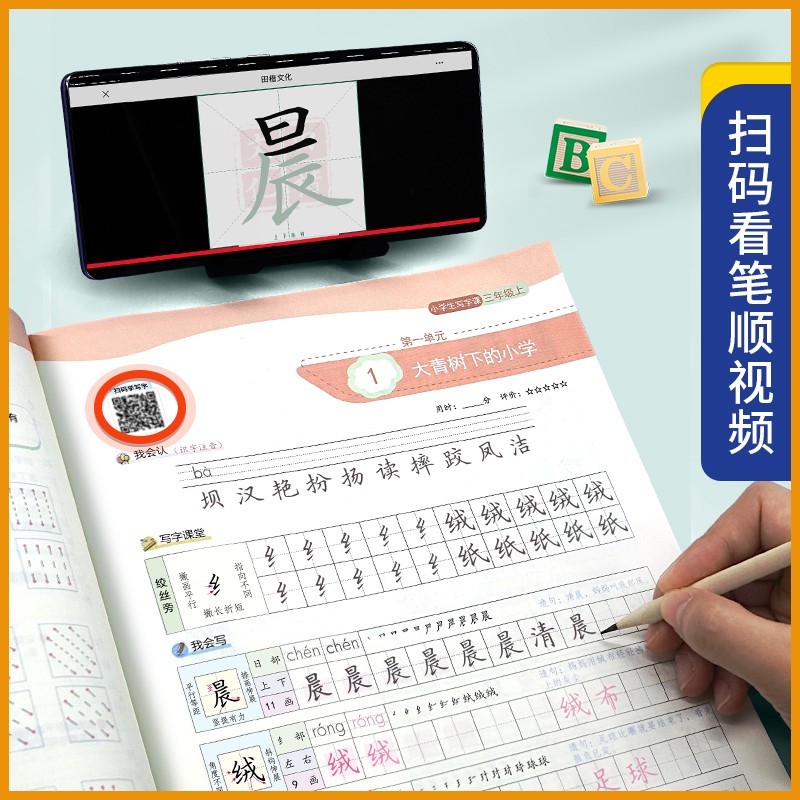 田英章小学生写字课课练楷书字帖一二三四五六年级上下册语文英语人教版 教材初中同步练字帖生字描红规范写字练习硬笔书法控笔训练