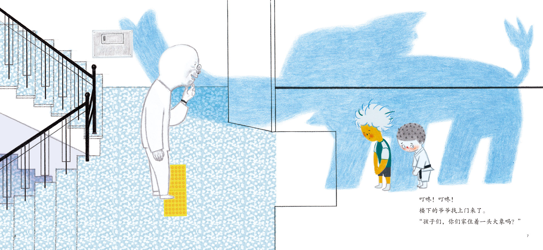 神奇绘本 楼下找上来 献给每个像小动物一样充满能量 热爱在家跑跑跳跳 如果你在楼上乱蹦乱跳 小朋友 让家长不再担心