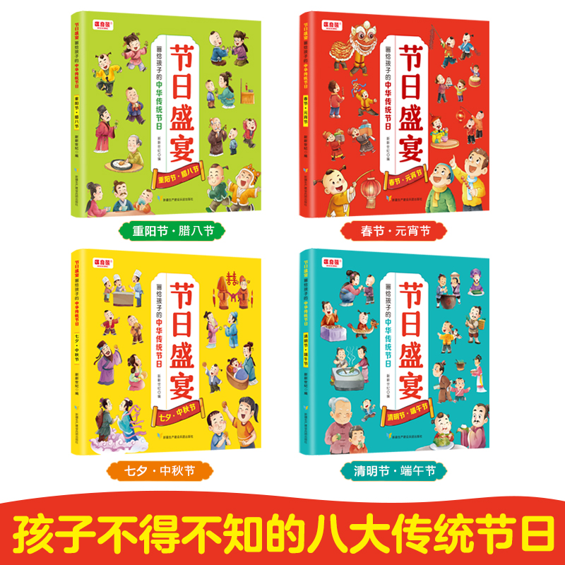 10岁儿童故事书春节元 中国传统节日绘本画给孩子 二十四节气带音频6 宵节端午节中秋节七夕 中华传统节日盛宴4册赠藏在古诗里