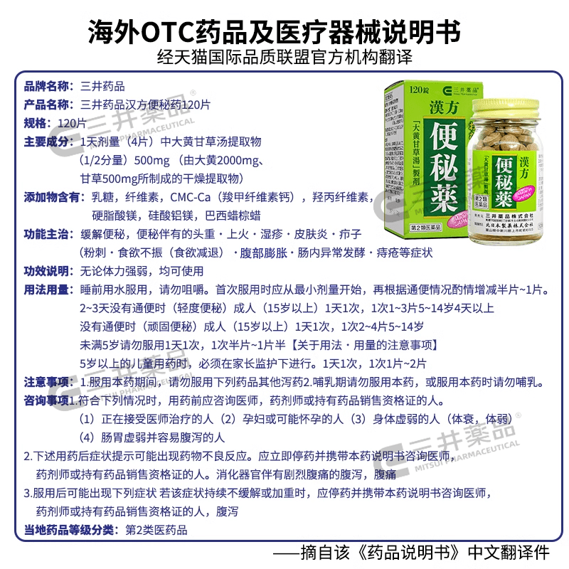 日本三井药品进口汉方便秘药丸便秘润肠通便排毒排宿便排油丸老人