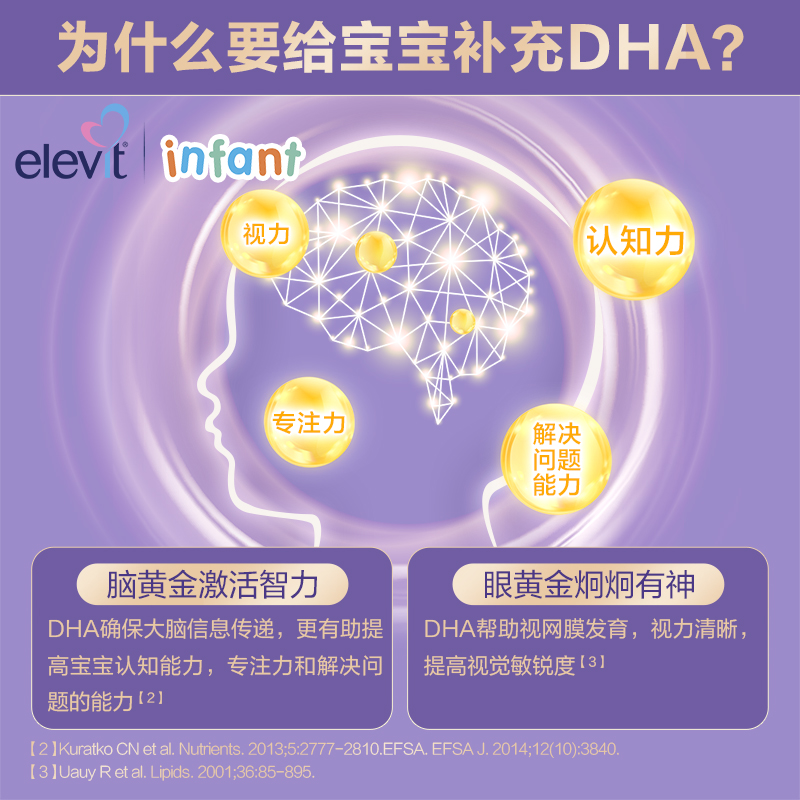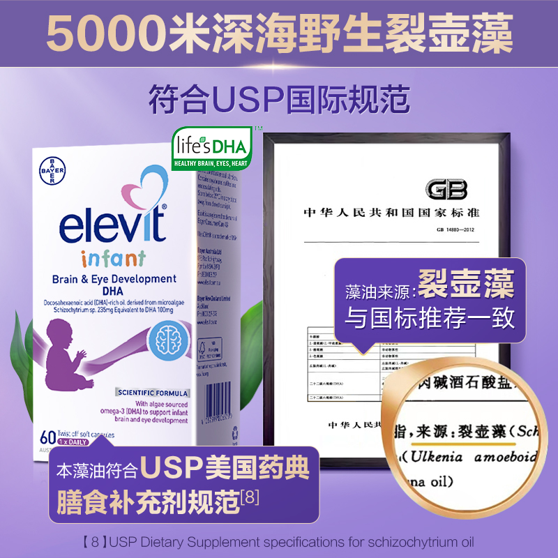 2盒装 Elevit爱乐维澳洲小爱乐维婴幼儿藻油DHA 宝宝 自营