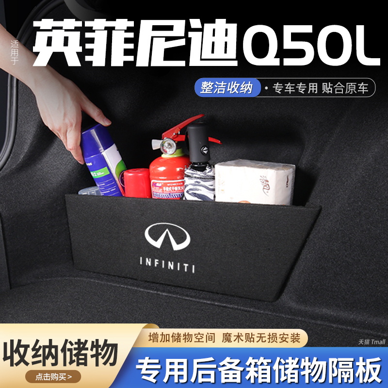 适用英菲尼迪q50l汽车后备箱隔板储物盒收纳箱尾箱垫挡板改装 饰品