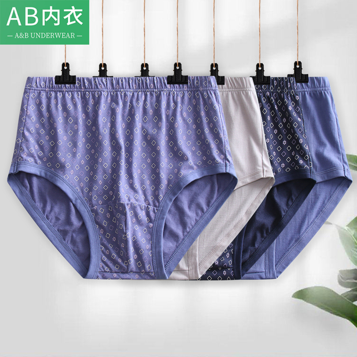 爷爷 男纯棉中年宽松老人老头大码 3条AB中老年人内裤 爸爸三角短裤