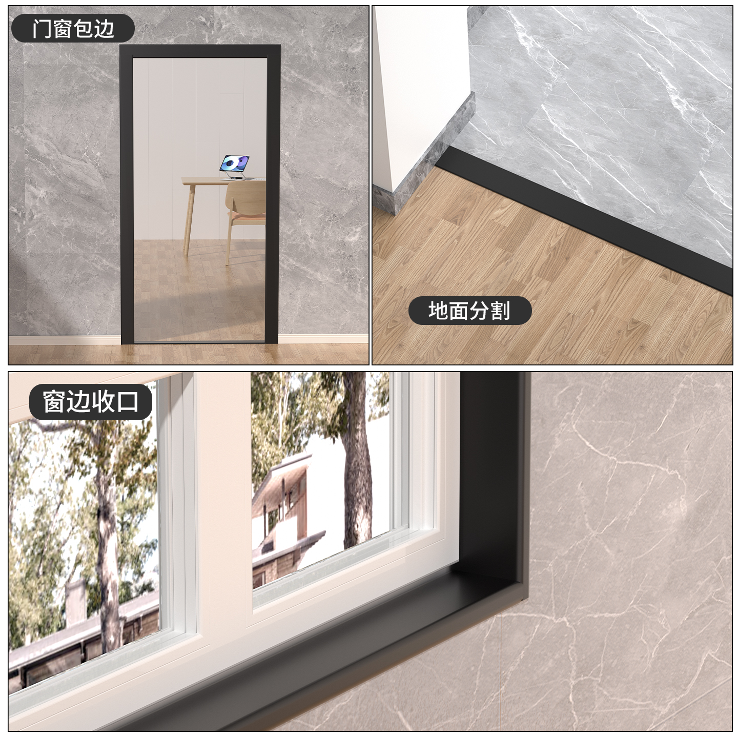 网红黑色瓷砖腰线装 复古半墙欧姆线压顶线条收边条 饰条卫生间法式