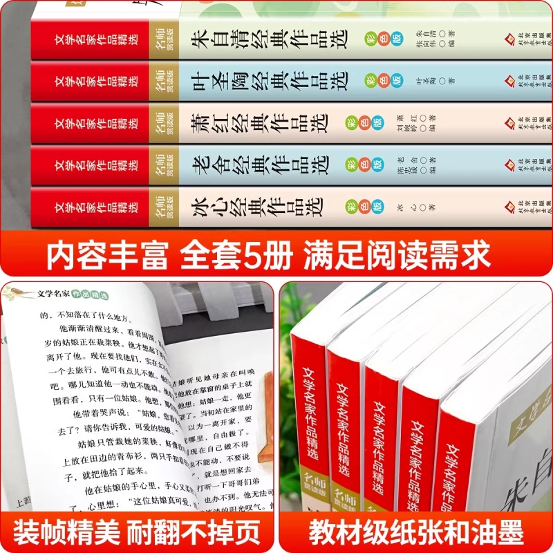 推荐 文学作品全集冰心鲁迅叶圣陶名家散文集精选四年级课外书必读正版 小学生五六年级课外阅读书籍t 朱自清老舍经典 小学生散文读本