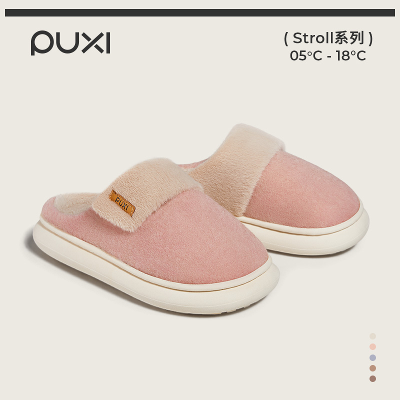 加绒保暖拖鞋 家居室内防滑拖鞋 女 女士秋冬季 朴西雪绒绒情侣棉拖鞋