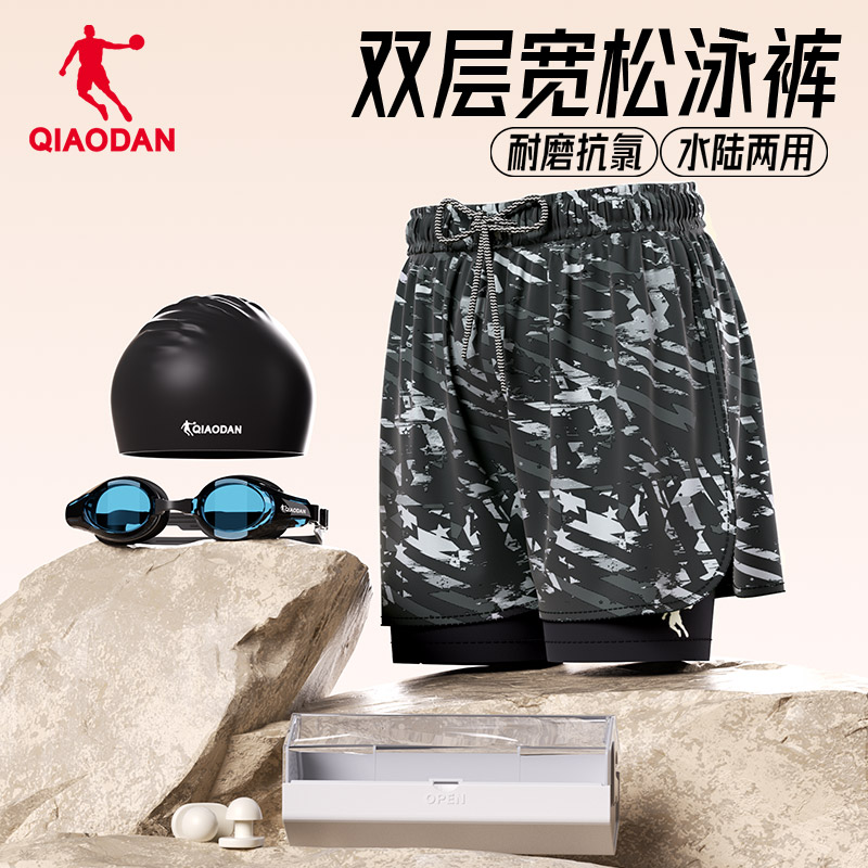 男士 五分温泉沙滩裤 泳裤 成人泳帽泳镜三件套2025新款 男款 乔丹正品