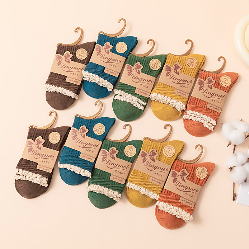 棉袜夏季 木耳边袜子女款 纯棉春秋无骨短袜防臭吸汗中筒袜配小皮鞋