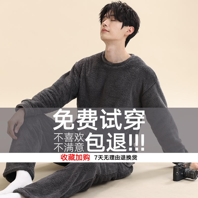 2025年春可外穿 加绒加厚法兰绒家居服套装 雅鹿男士 睡衣珊瑚绒冬季