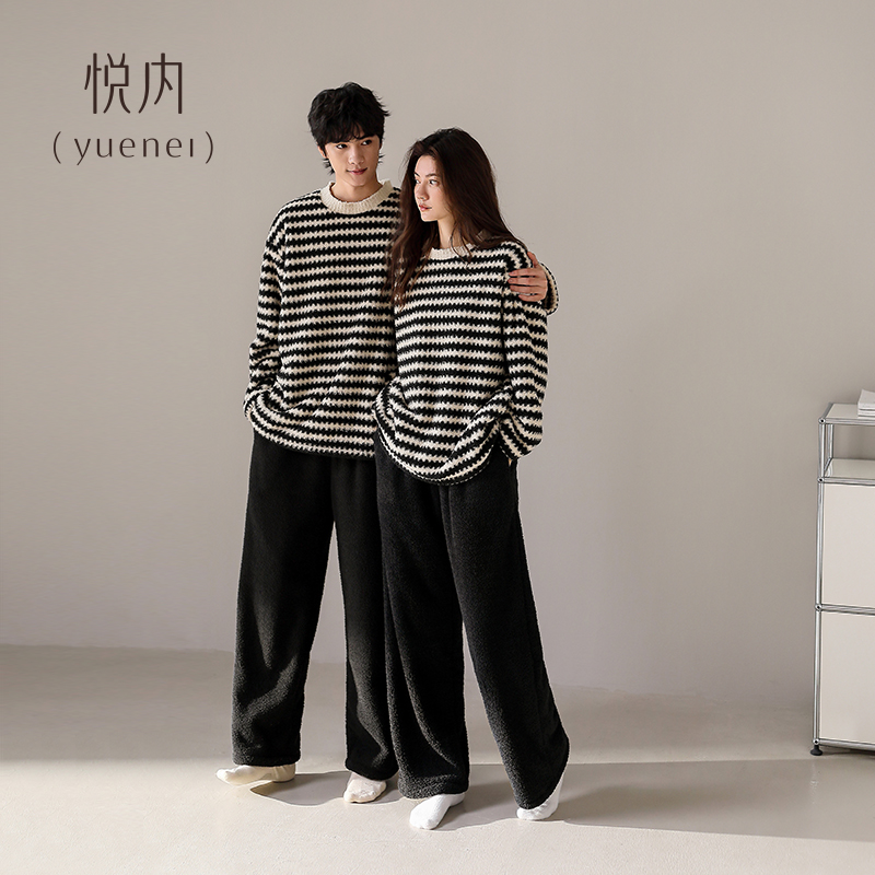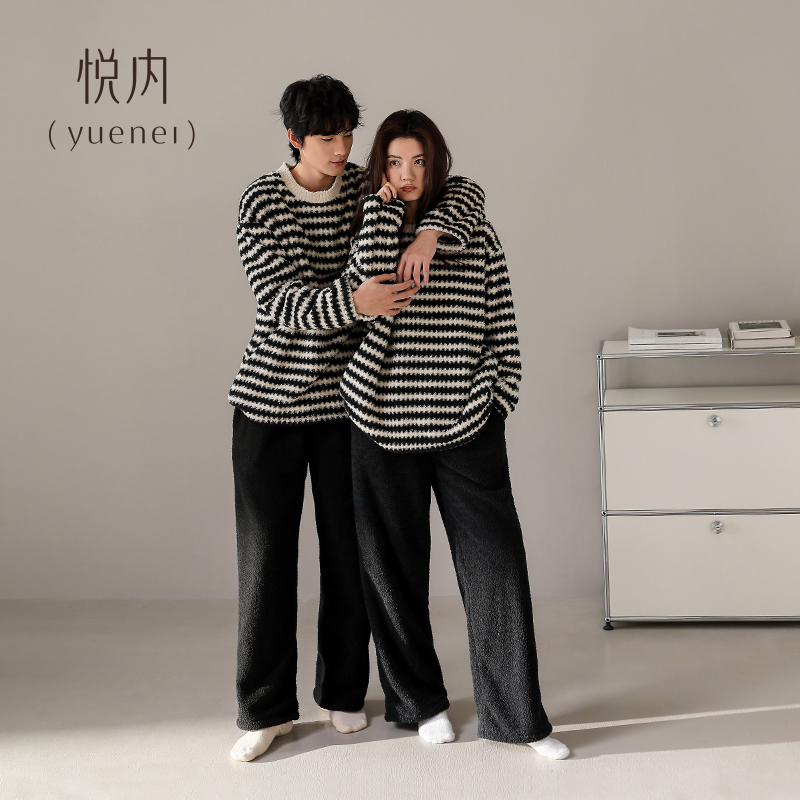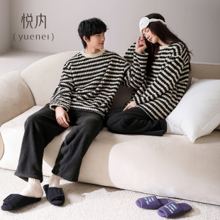 拉链珊瑚绒加绒可外穿情侣家居服女套装 睡衣秋冬男款 双层加厚