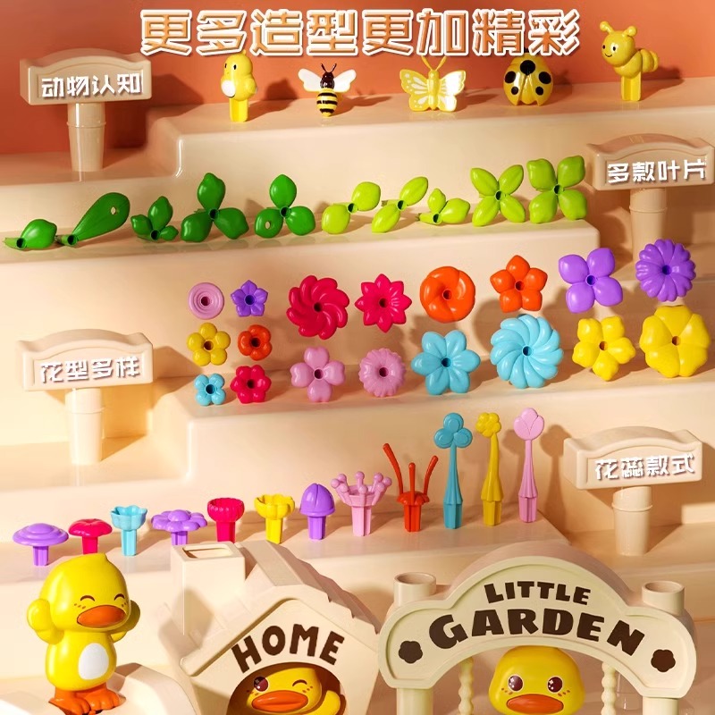 儿童益智DIY积木拼装 积木花拼搭玩具男孩女孩插花拼图 花2025新款