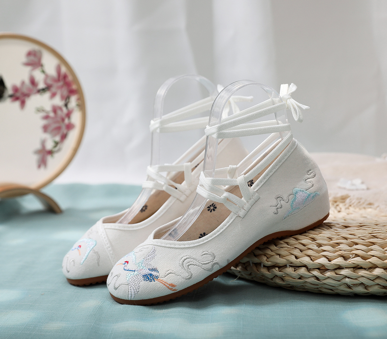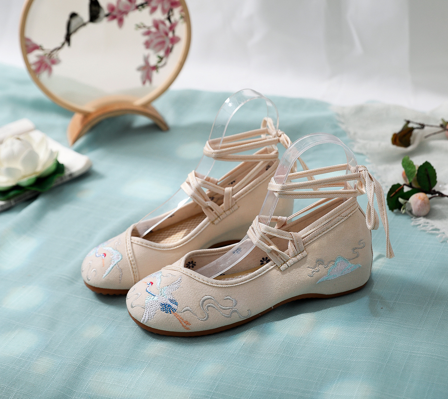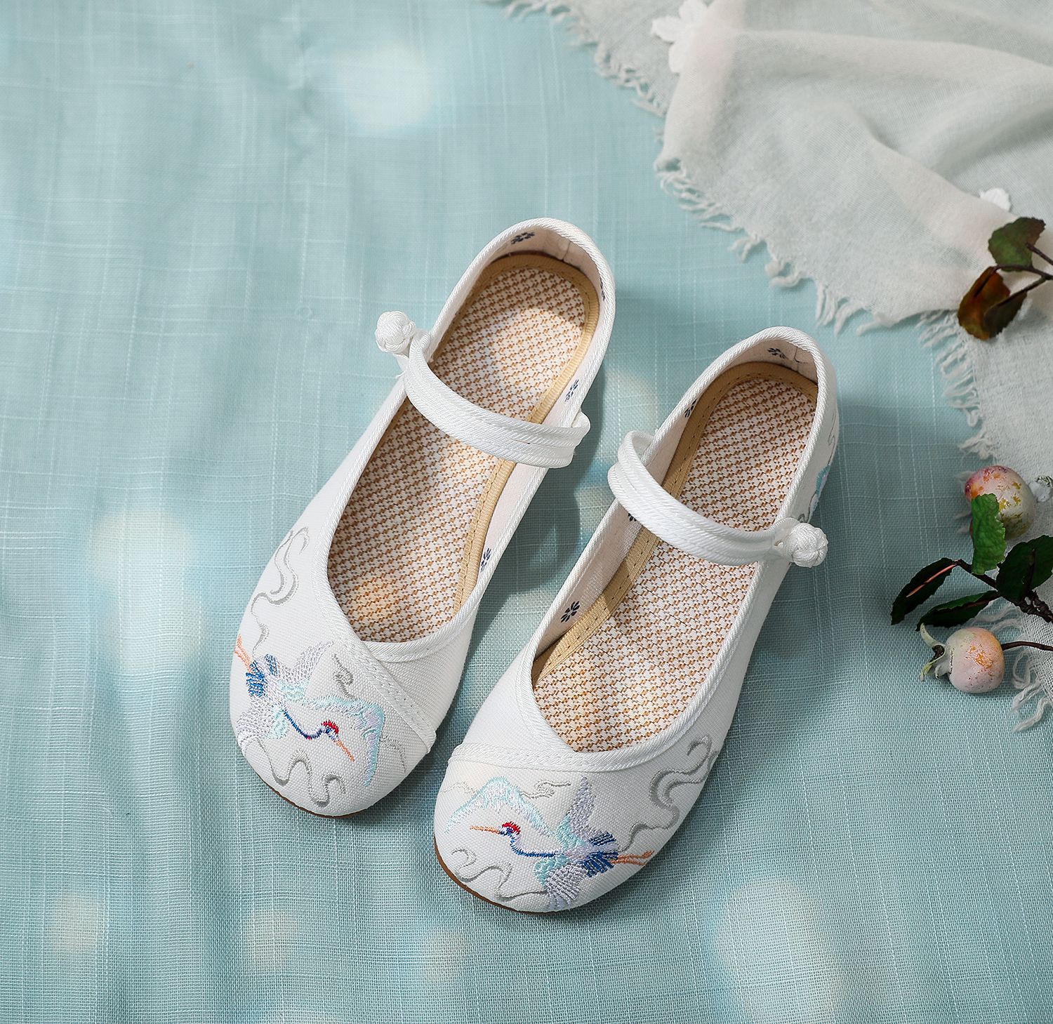 汉服鞋 老北京布鞋 牛筋软底舞蹈鞋 旗袍女单鞋 女凌云鹤民族风绣花鞋