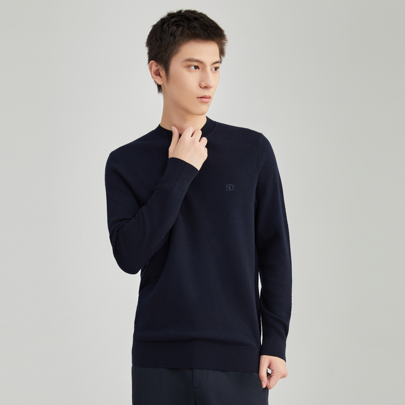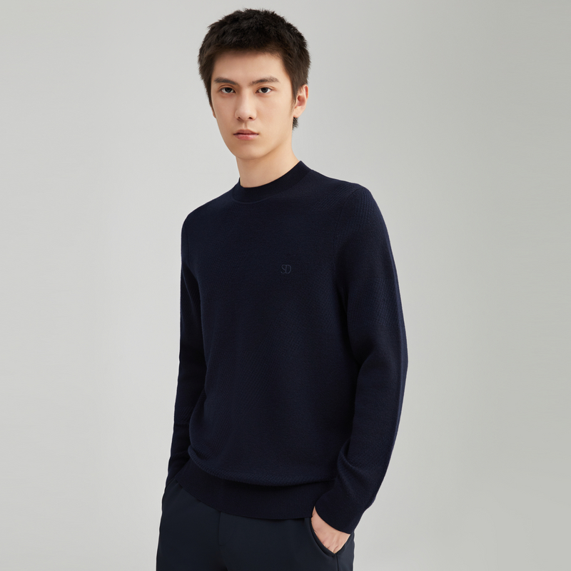 HLA 25秋冬新远红外黑色毛衣男 海澜之家山不在高含羊毛圆领针织衫