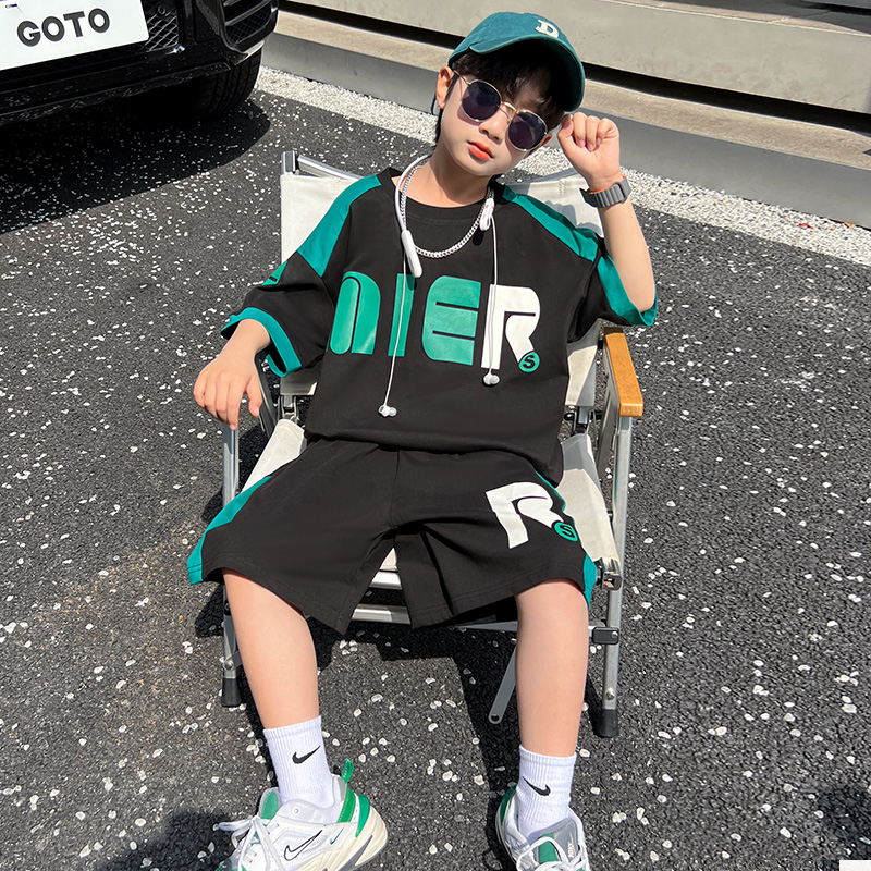 男童夏装 上衣夏季 短袖 2025新款 运动大童帅气男孩t恤潮T 套装 儿童装