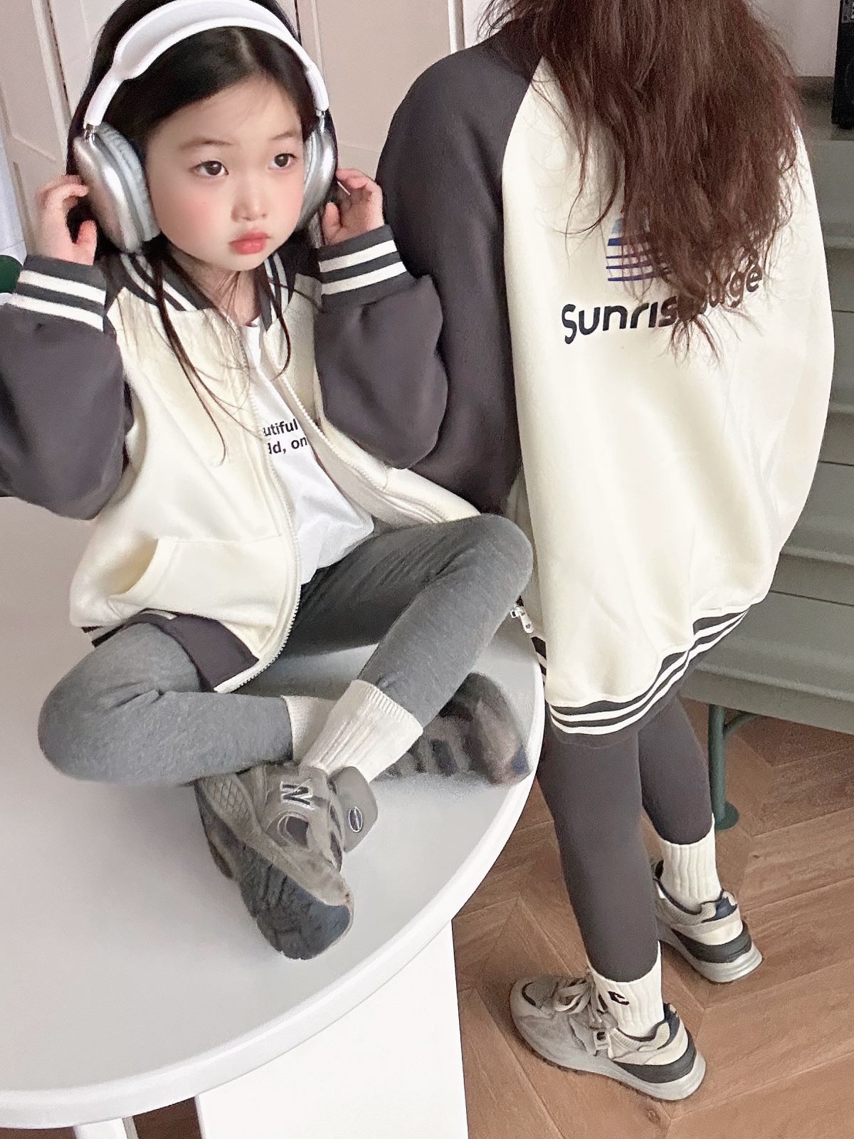 拼色四口韩版 一家三口开衫 外套洋气母女开衫 春秋母子装 上衣 亲子装