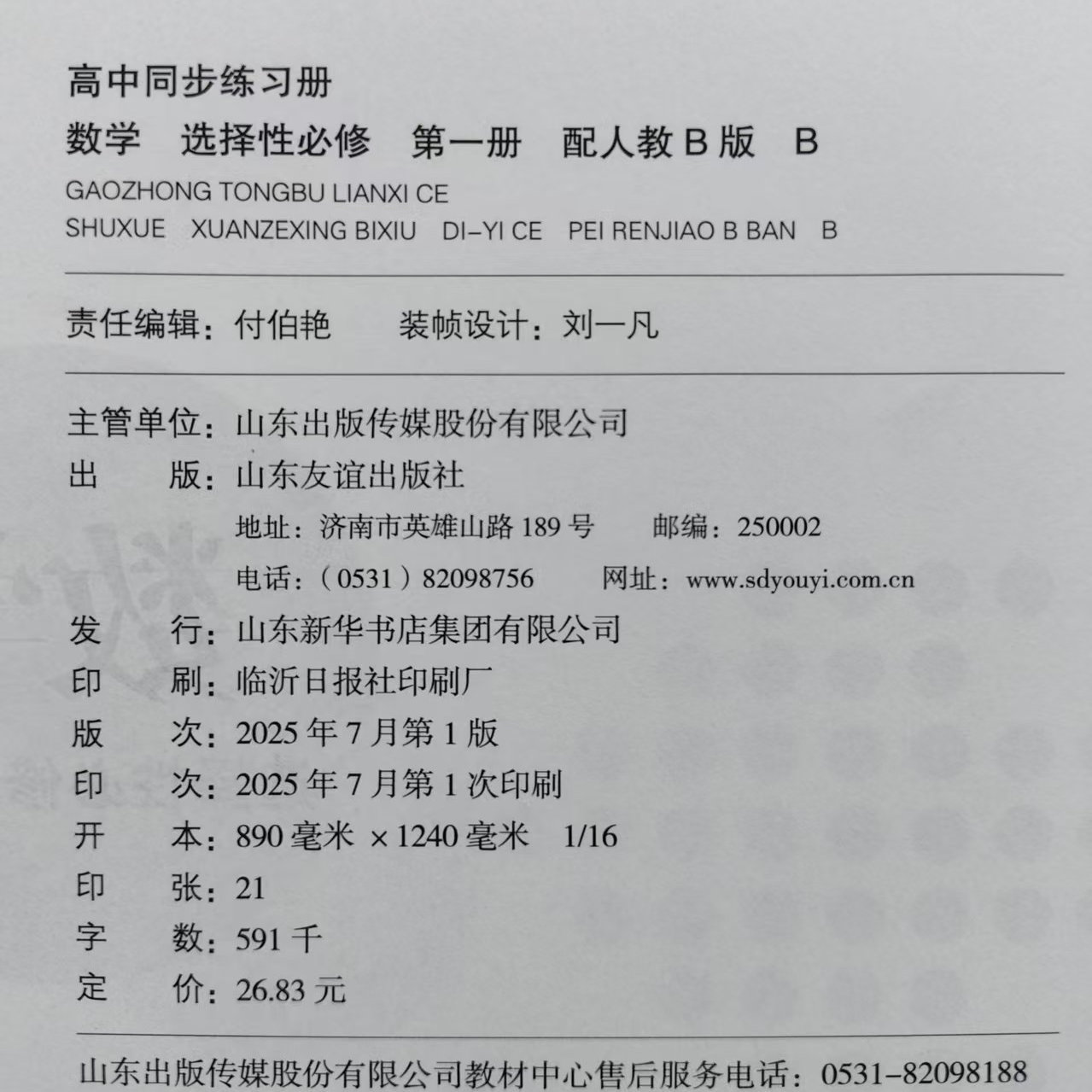 B层级 社高二数学选修1同步练习册配人教B版 2025秋B层配人教B版 高中同步练习册数学选择性必修第一册山东友谊出版