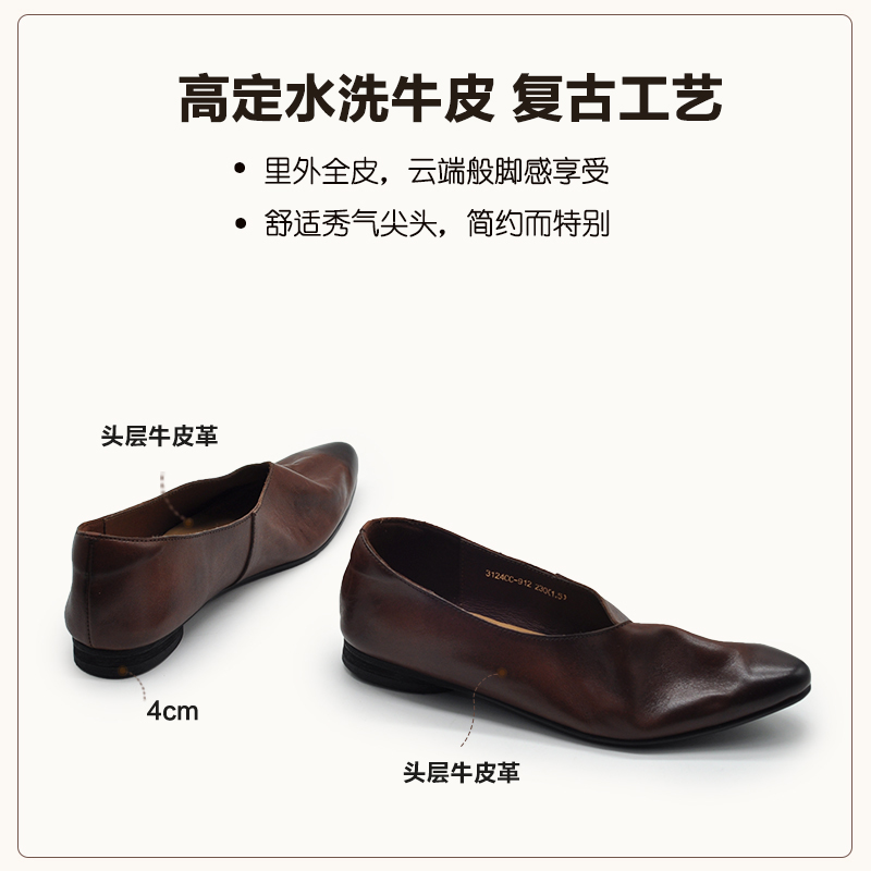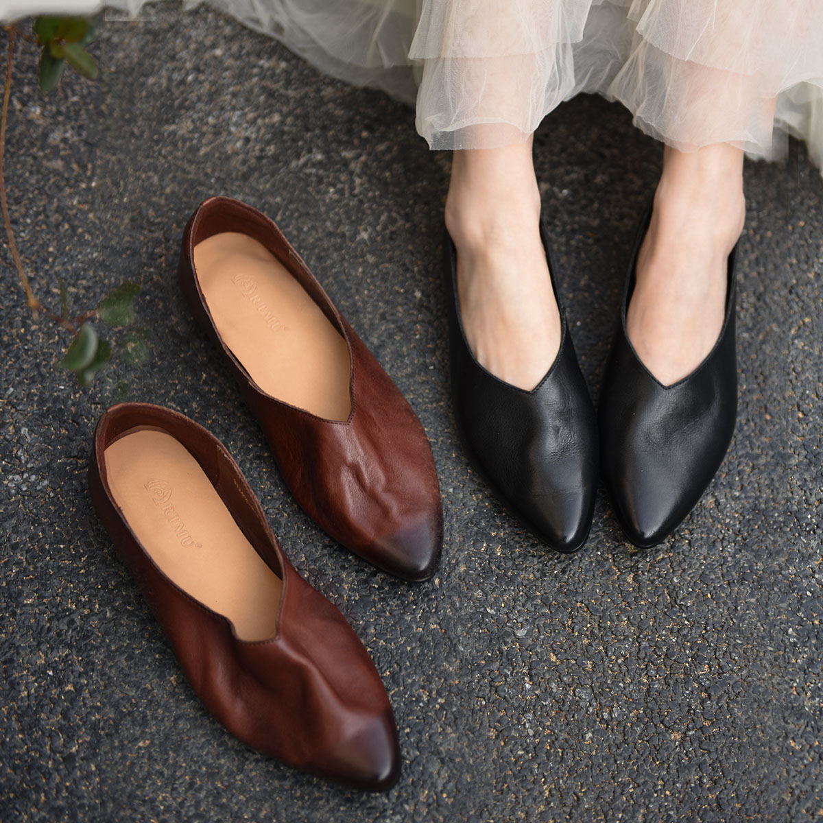 一脚蹬新款 Artmu阿木原创水洗尖头单鞋 黑色小皮鞋 工作鞋 女平底鞋