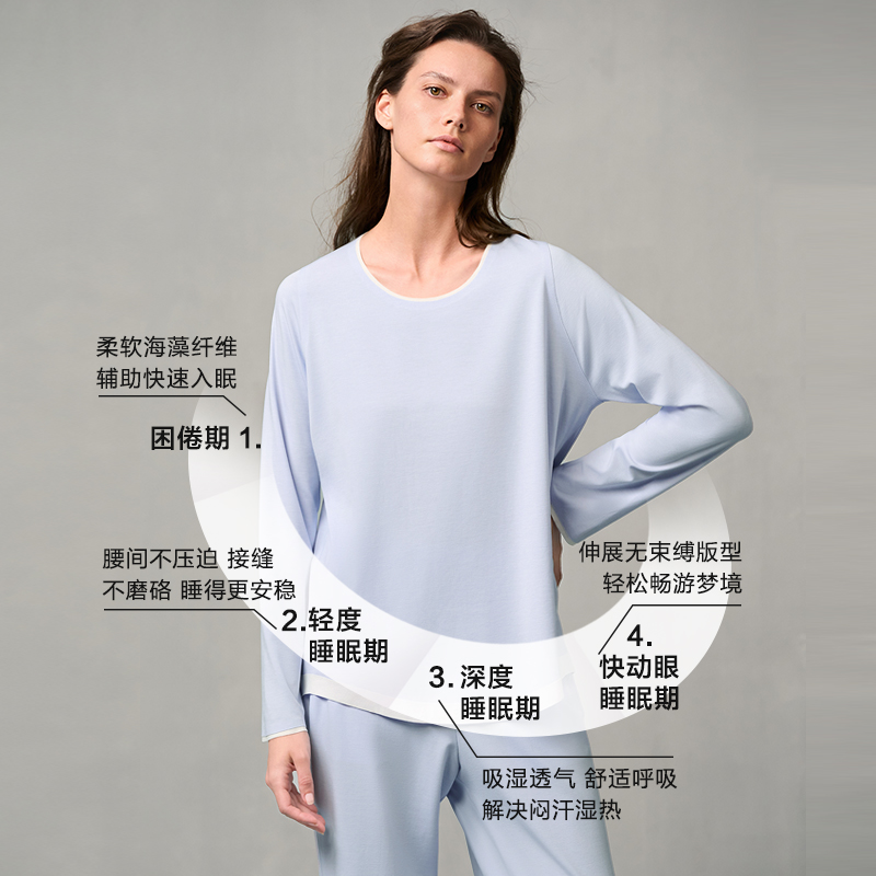 分身家居服套装 长裤 睡裙 爱慕海藻睡眠衣秋女抗菌防螨短袖 免定金