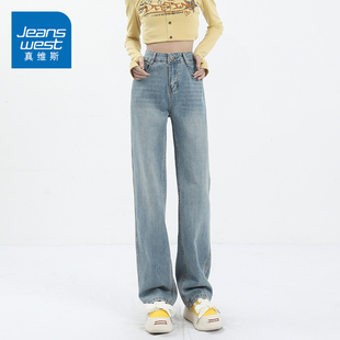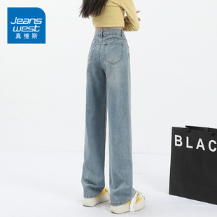 女宽松阔腿拖地2025新款 秋冬款 爆款 子初秋季 裤 KZ真维斯高腰牛仔裤