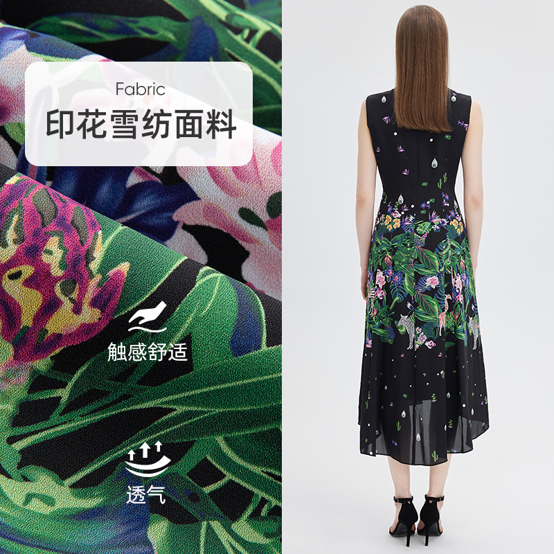 黑色印花连衣裙气质裙子无袖 夏季 度假长裙 马天奴女装 专柜正品