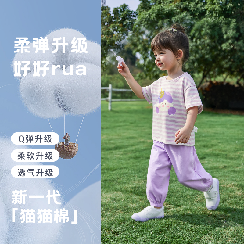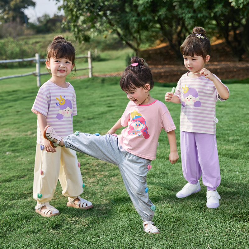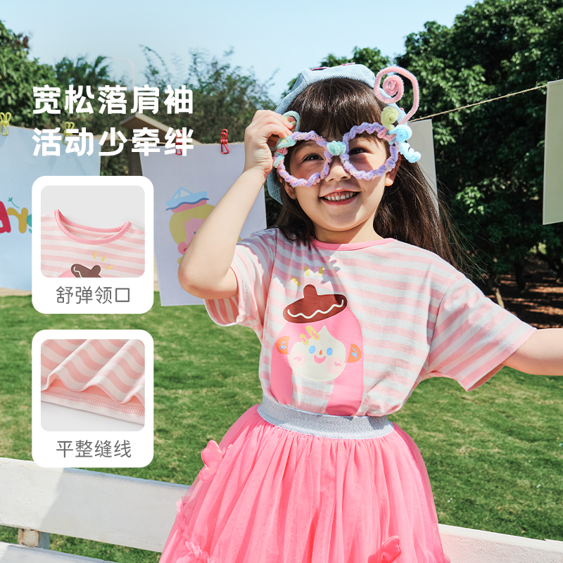 3岁儿童圆领T恤夏款 女童夏季 小女孩上衣夏可爱2 宝宝条纹夏装 短袖