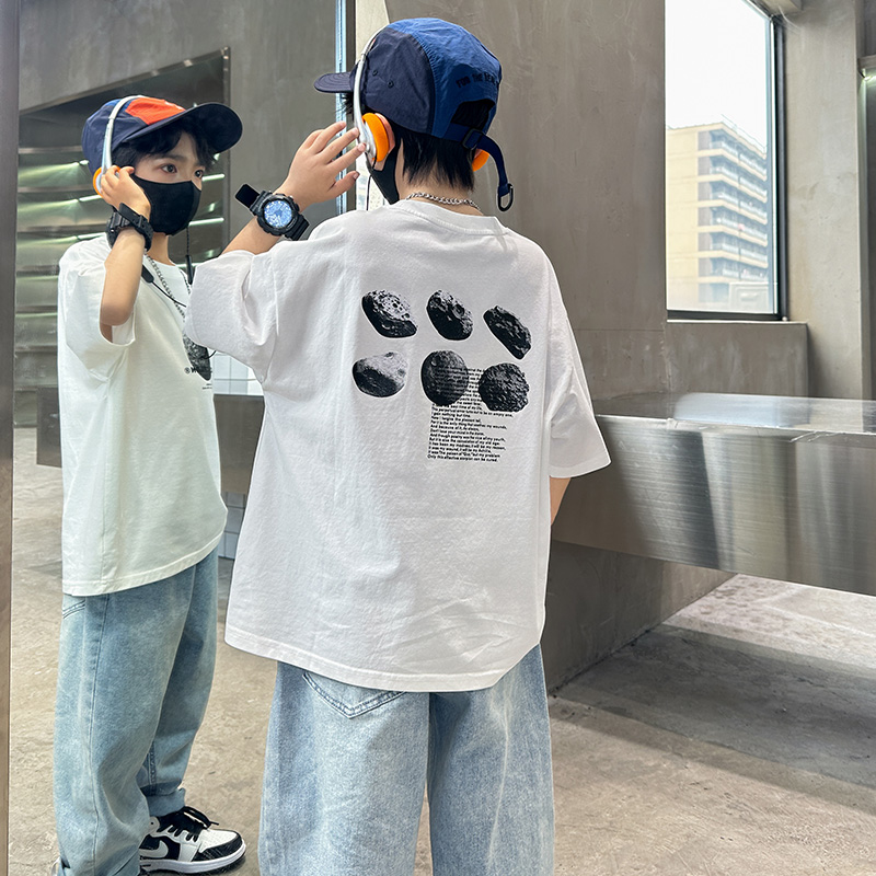 清仓中大童男童夏季 夏装 短袖 黑色儿童装 上衣t T恤纯棉2025新款 夏季