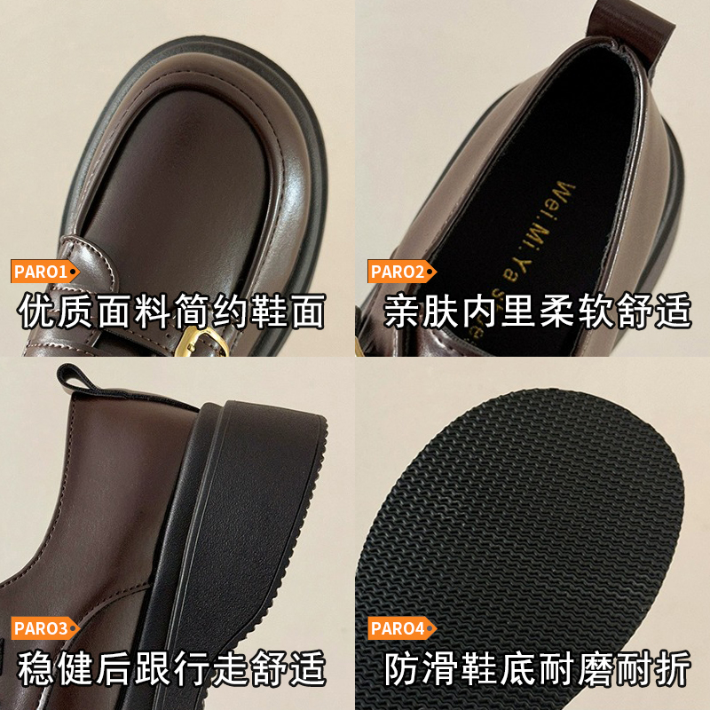 女款 百搭粗跟女鞋 2025年秋季 英伦风增高小皮鞋 新款 热风厚底乐福鞋