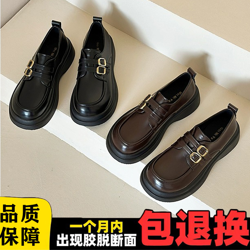 女鞋 女黑休闲单鞋 子2025春秋新款 厚底英伦风小皮鞋 爆款 真皮乐福鞋