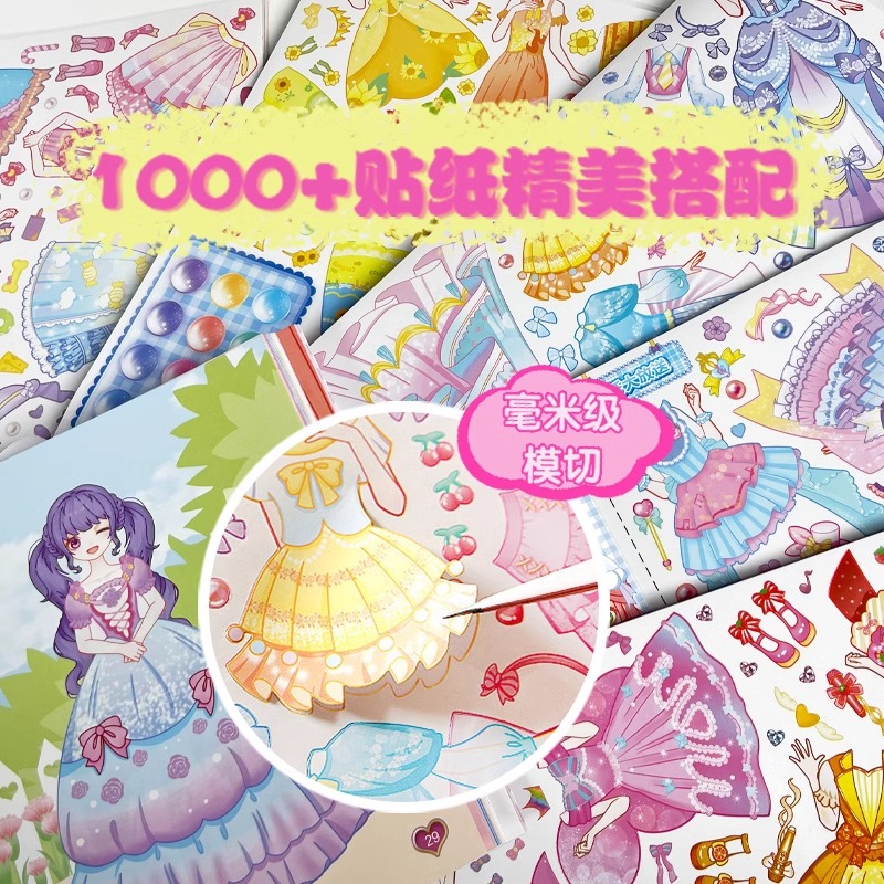 百变公主3到6岁换装 秀男女孩儿童益智卡通游戏贴贴画专注力训练神器宝宝早教启蒙幼儿园玩具美丽粘帖纸 贴纸书梦幻闪闪公主创意变装