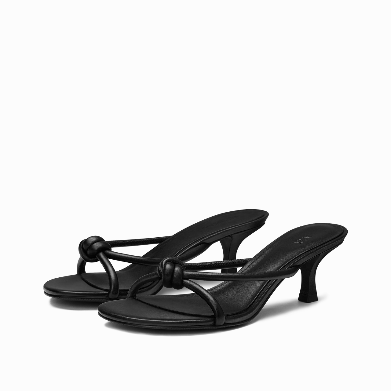 春夏一脚蹬外穿性感绝美单凉女鞋 高跟拖鞋 黑色羊皮法式 烫社交女鞋