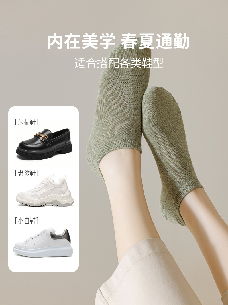 袜子女船袜夏季 纯棉防臭吸汗白色网眼透气短筒夏天浅口隐形 薄款